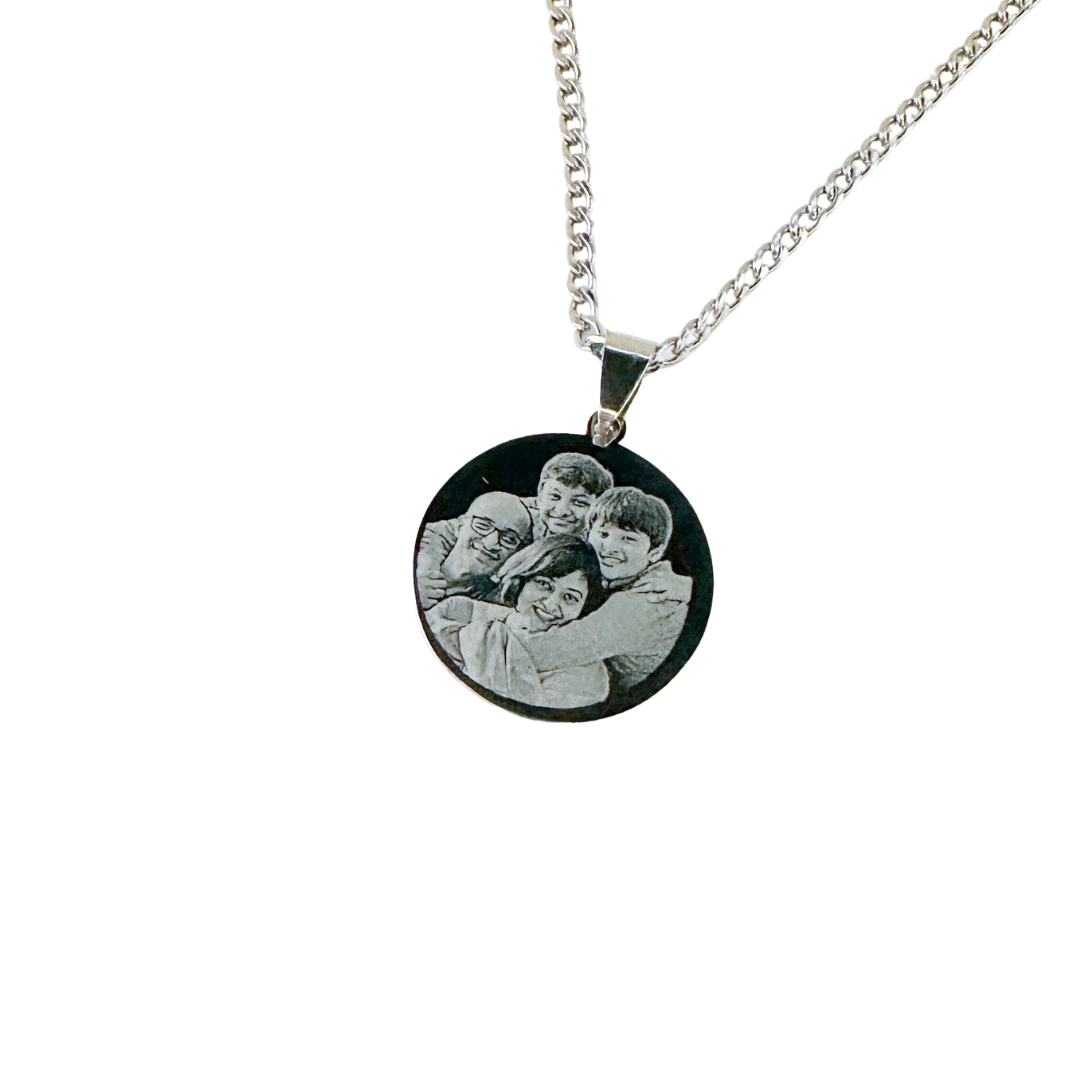 Cordão masculino em aço com pingente redondo personalizável, ideal para gravar nome, iniciais, data especial ou até uma pequena imagem. Um acessório moderno e cheio de significado, perfeito para usar no dia a dia ou oferecer como presente especial. Fabricado em aço de alta qualidade, resistente à água, não escurece e mantém o brilho por muito tempo.